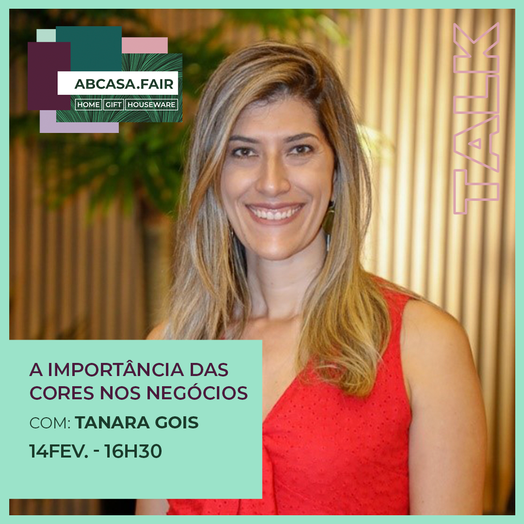 As cores são muito importantes para os negócios relacionados ao segmento de artigos para casa e decoração. Para destacar o tema, a ABCasa Fair realizará painel no dia 14 de fevereiro, às 16h30, no Expo Center Norte, na capital paulista, com a presença de Tanara Gois, Claudia Albertini e Camila Carvalho.
