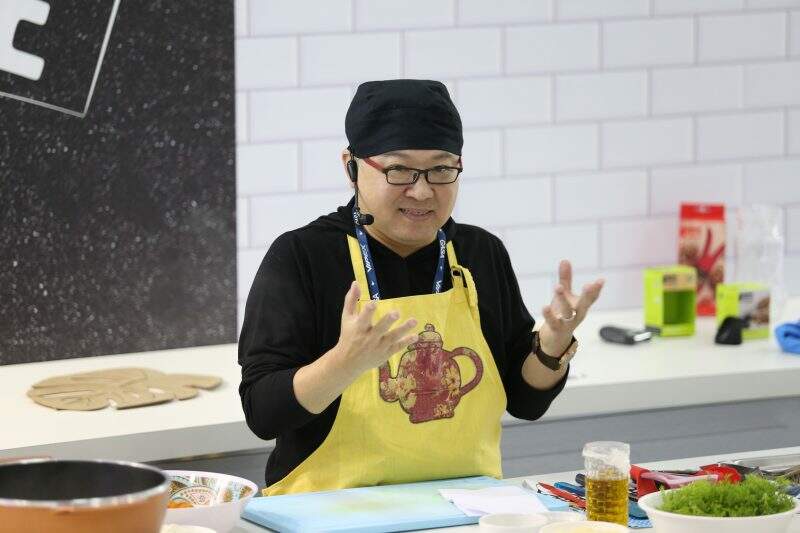 Chef Lee Fu apresentou nhoque de cenoura acompanhado de molho pesto com queijo ralado na Arena UD Experience