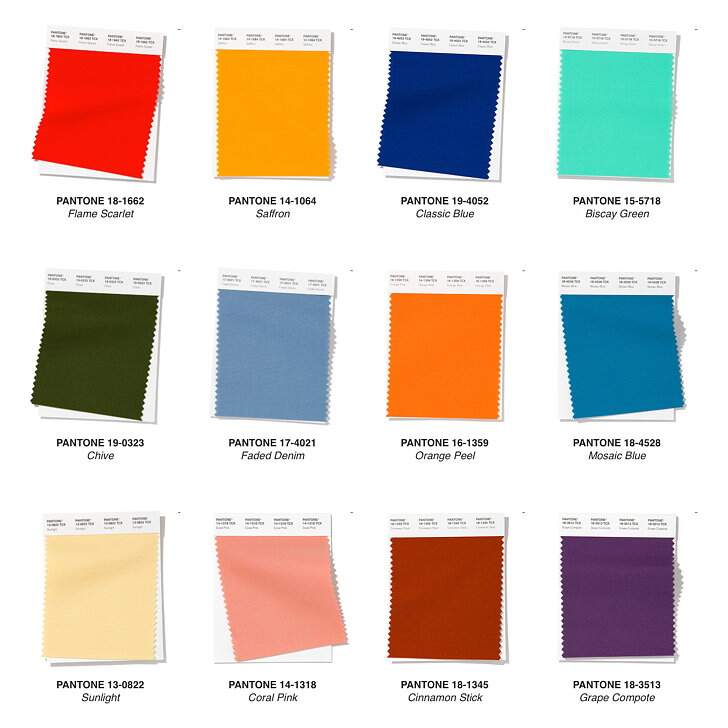 As cores da cartela geram fortes combinações multicoloridas, energéticas e otimistas com um vermelho vibrante, além de amarelo, laranja, variações de azul e um tom de coral.